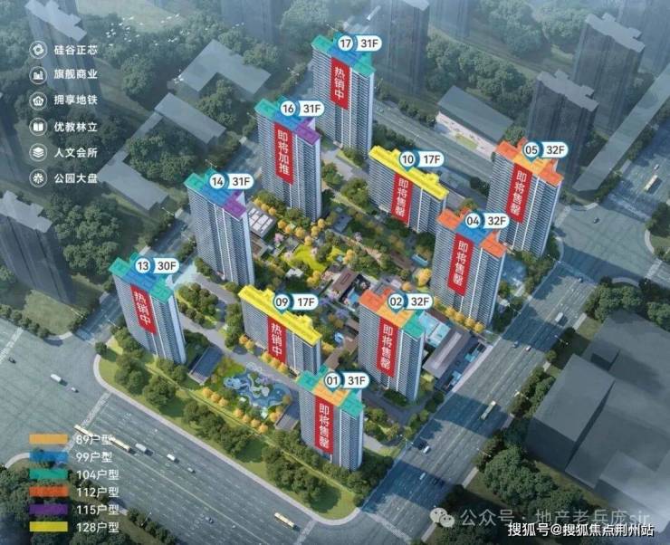 户型三种:99/104/115,这个面积是推广面积,以政府销许面积为准,所以大家看房时候不要有疑惑,前期开发商需要做宣传,都是大概的面积,但是每栋的户型配比,高度会有差异,所以得房率是不一样的,下面我以宣传面积用标注户型