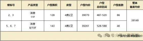 整体备案均价约39149元/㎡,单价约37442-40958元/㎡,总价约487-588万/套,精装交付。