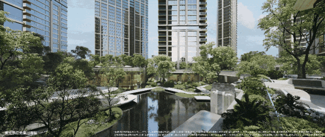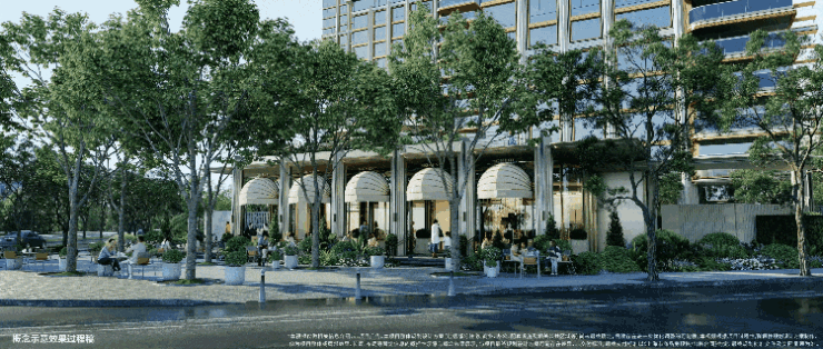 街区动线经过公园化处理,抛弃横平竖直的路径逻辑,如游园般组织。立体花园街区让外摆、花园和公共活动在垂直方向延展,商业与塔楼主动分离,减少干扰,保证居住的长期纯度。在悬浮绿庭中漫步,花园、露台、街景三重景观交叠,商业体验与自然疗愈无缝切换,每一次驻足都是沉浸式的生活体验。
