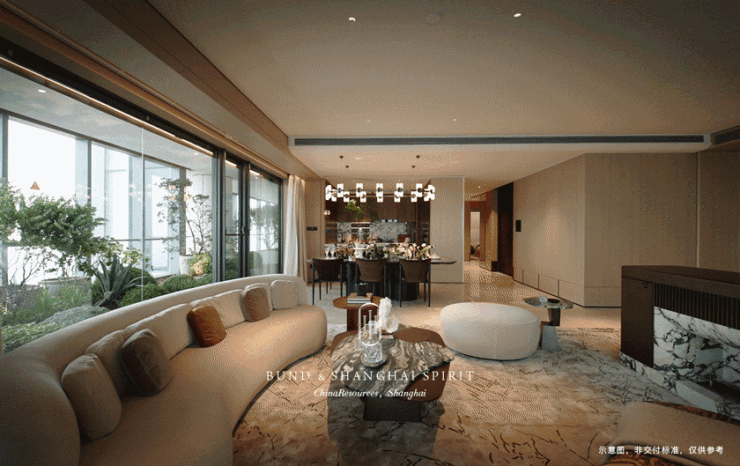 澐启滨江的立面,不只是建筑物的堆叠,更是对上海滨水尺度与城市精神的回应。作为“一江一河”的共建者与参与者,华润置地在这里塑造了一组为黄浦江量身定制的风帆群像——中国江河1号的城市封面——将滨江居住的生活想象和城市文化意象融为一体。