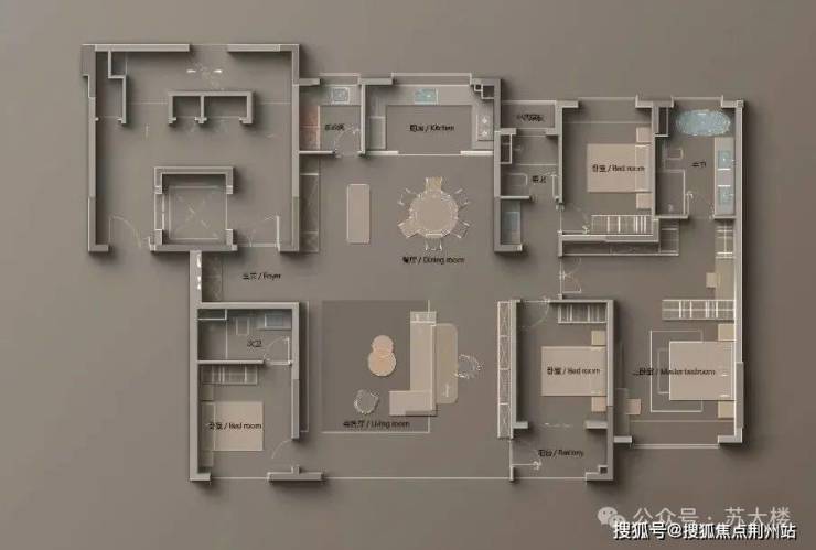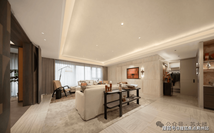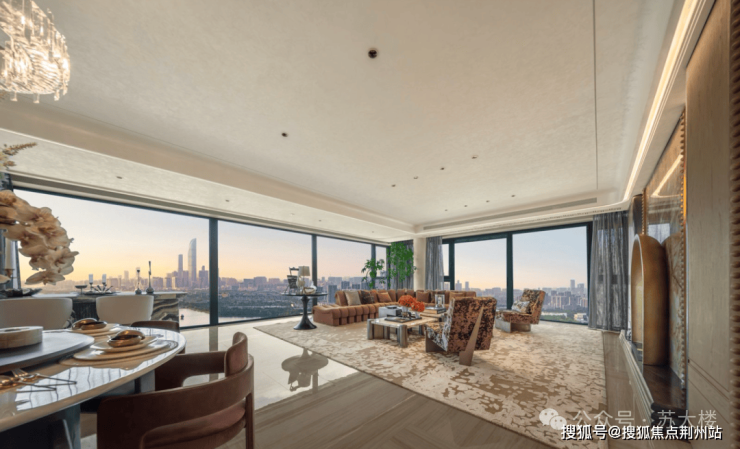 朝南开间15.55米,客厅与卧室双联阳台设计,阳台长度9.75米,超级主卧西侧带大观景窗。