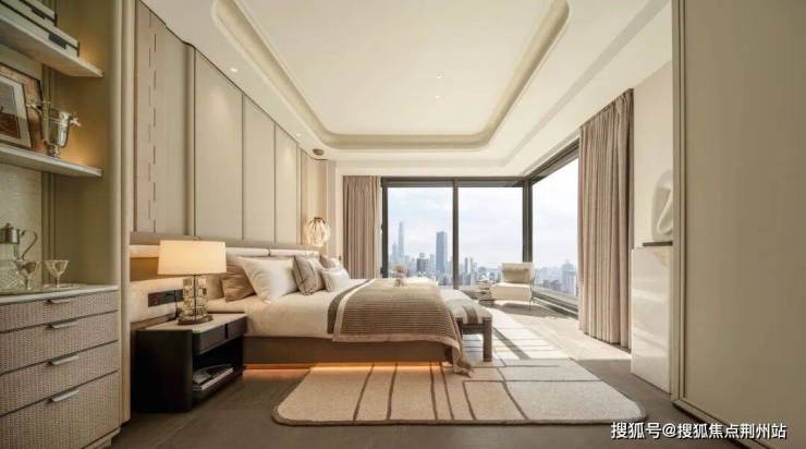 三套房设计,主卧以酒店式套房的格局,搭配270°环幕视野,让每一天的醒来都有光影作陪。