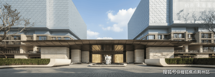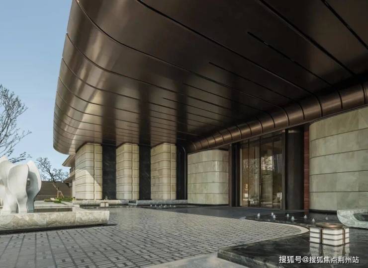 在城市与社区的接驳地带,我们希望以一道“会呼吸的烟火幕墙”重新定义了上盖型物业的界面。主入口以杭州博物馆镇馆之宝“玉琮”为设计原型,将其转译为序列化的柱式与石台。