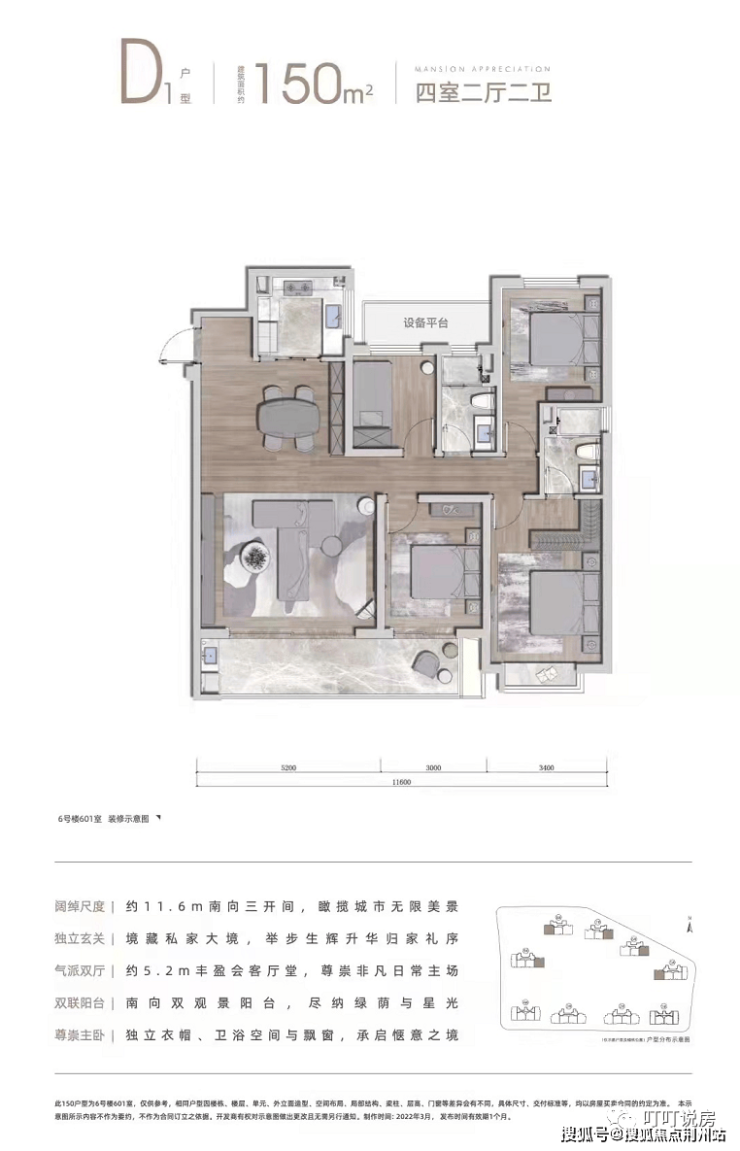 项目一共有四个户型,分别是109㎡(中间套)、110㎡(边套)、128㎡(边套)、150㎡(边套)