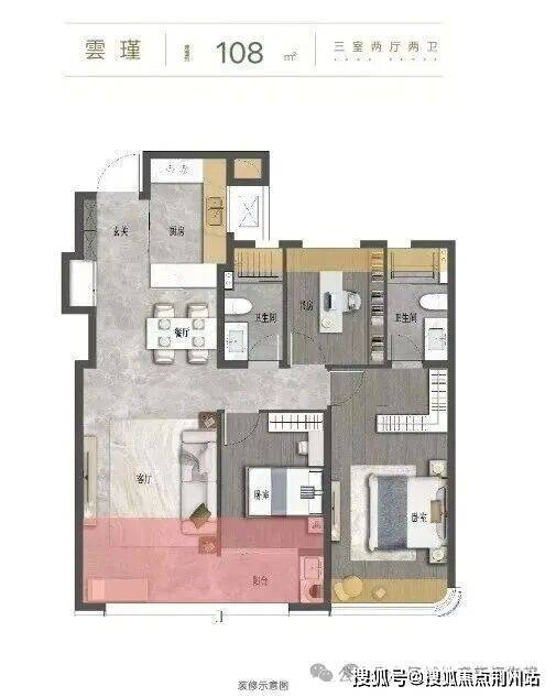 108㎡ 3 室 2 厅 2 卫