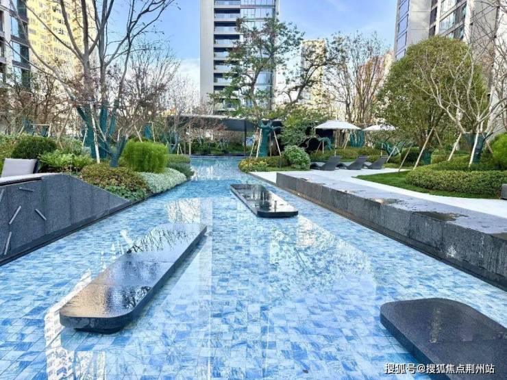 考虑到不少小区的戏水池略显生硬、使用频次低,既然温州润府已有室内恒温泳池,这里果断选择更显自然的景观水池。