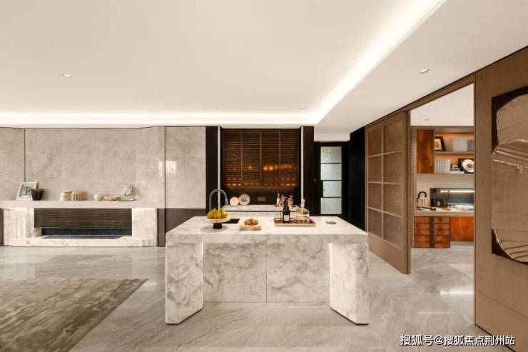 在样板房里,我们可以看到,在四房设计、大面积收纳空间之下,依旧空间感十足。一体化餐客厅面积仍达约70m²,主卧套间也达约30m²,展现质美居家理念。