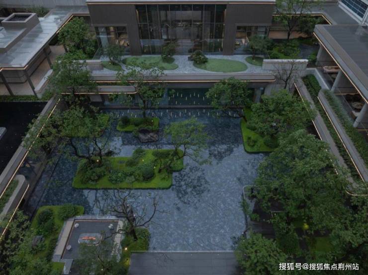 中心花园以水为轴,贯穿东西,展现秀美灵动之景。