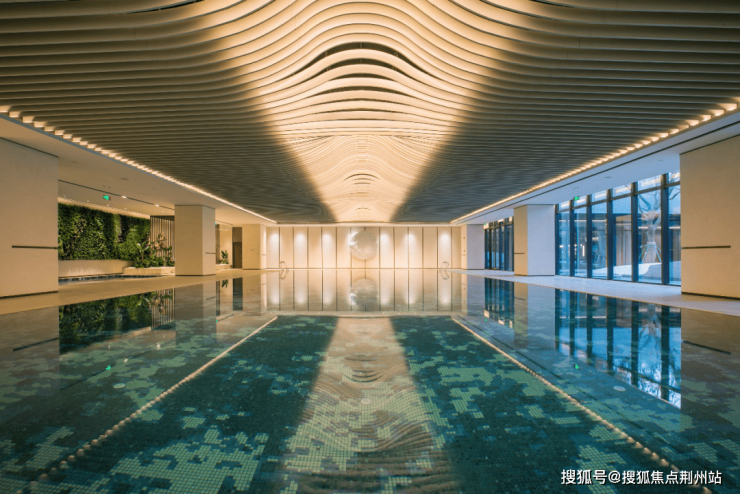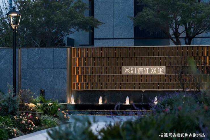 第一眼度假酒店式落客区,奢阔门头以艺术墙体结合金属嵌条、迎宾水景、灯光等营造高奢质感,予业主归家的仪式感、秩序感和身份感。