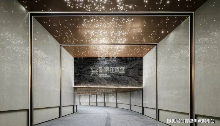 地库入口是招商蛇口打造的星空顶,数千颗LED光源汇聚成璀璨星空,定制出钻石海洋般的浩瀚苍穹,搭配追光等待,即使身处地下,也可以照亮每一次的归家之途。