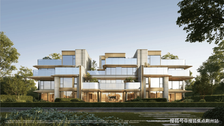 在总体布局上,观湖雲境依托1.5的容积率,以4幢空中花园大平层聚合面湖一侧,35席叠墅及联排沿社区更纵深方向疏朗铺开。别墅产品最值得被看到的设计变化是“单边入户”的构思——传统联排两侧共用墙体和中央户门,难以避免会出现明显的联排感。而正象团队通过侧边入户的平面安排,让每一户在视觉上都呈现为相对独立的横向实体,极大弱化了连着成片的拘谨印象。
