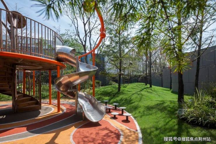 小径与植物相互穿插,随着两侧的地形的缓缓起伏变化,营造富有野趣的林间乐园。郁郁葱葱的绿植,蜿蜒曲折的道路,未知的体验激发着孩童对自然的探索。