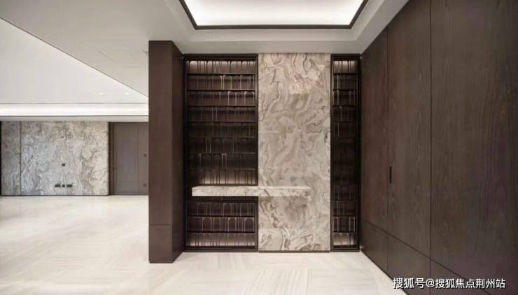推开房门的刹那,尊贵感更是油然而生,重工且精致的玄关背景墙,审美调性也很高。