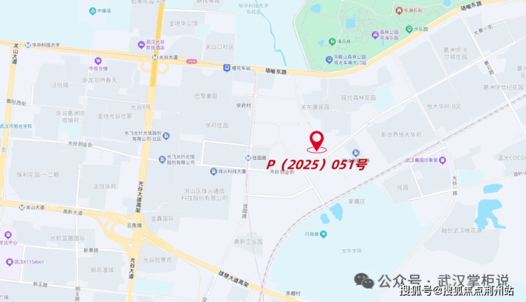 P(2025)051号地块是今年7月光谷土拍专场中,由武汉清能瑾诚置业有限公司(湖北联投清能集团)以总价22920万元竞得,成交楼面价约9422.95元/㎡,溢价率约17.42%。