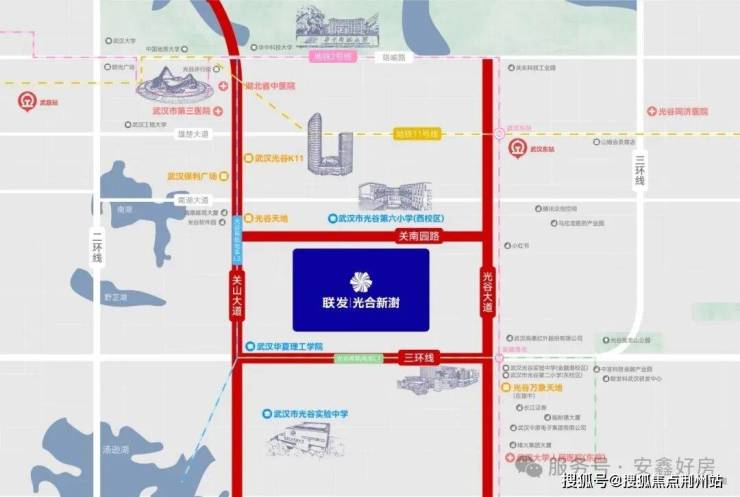 项目位于东湖高新区关山板块,到二环线直线距离约为5.3公里,到三环线直线距离约为800多米,属于三环内。