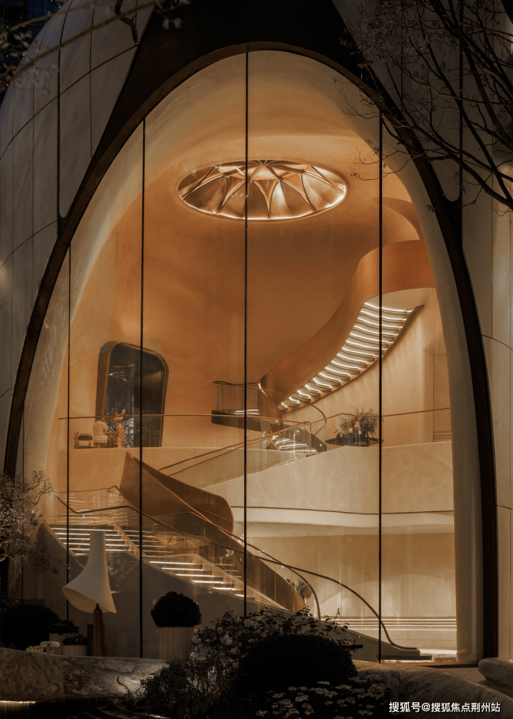 建筑形态上,gad 以钱塘江潮与江岸贝壳为设计灵感,运用工艺精美的曲线语言,以连续、流动的三维曲面塑造出富有韵律的城市天际轮廓。双曲面塔冠与柔和转折的立面线条,摆脱传统平直界面,形成自然有机、独具辨识度的建筑形态。