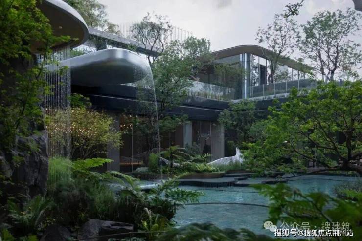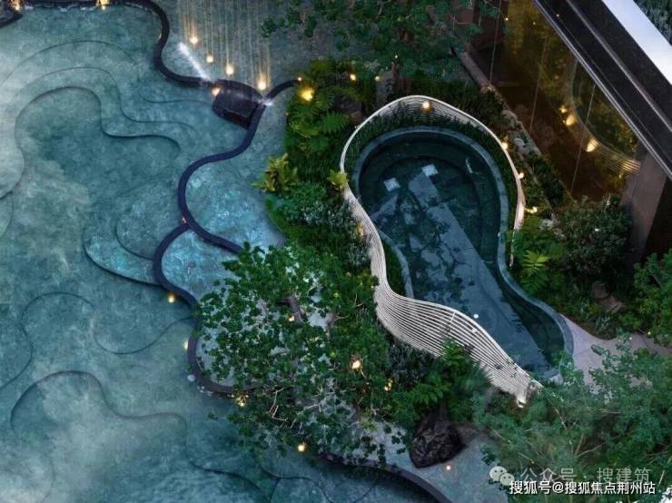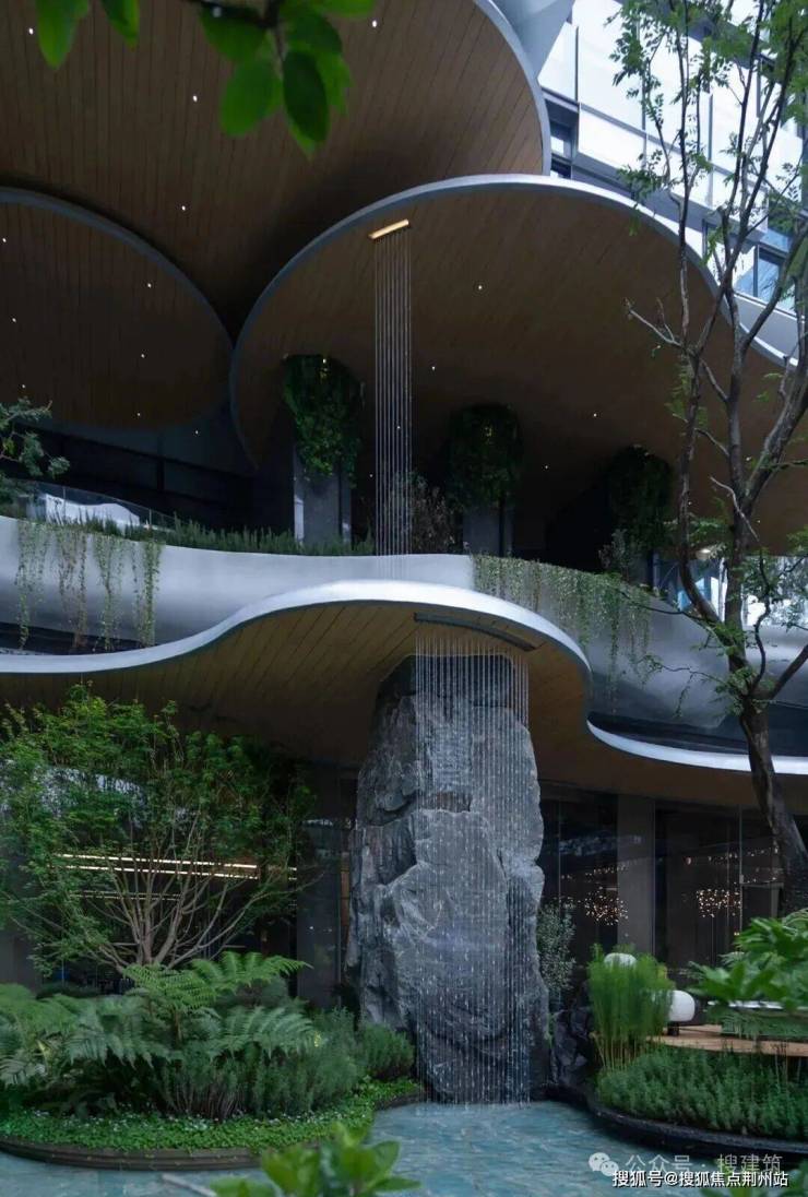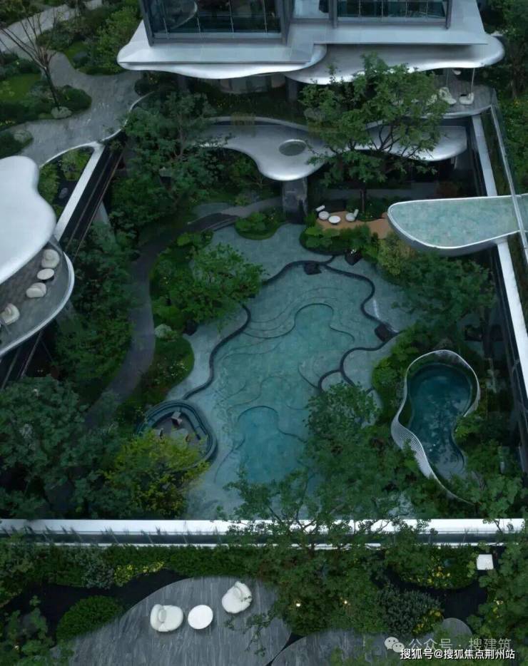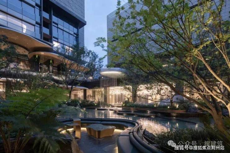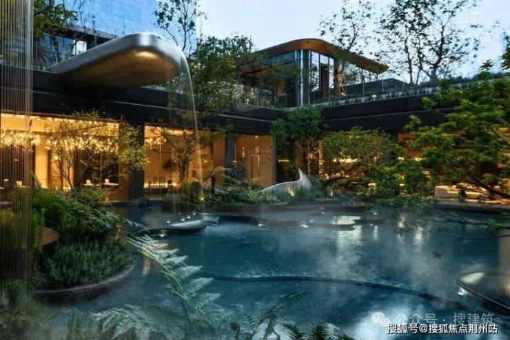 苏州鸿湖上下沉庭院以“四水归堂”为核心理念,打造出一处融合传统东方意境与现代设计美学的禅意空间。