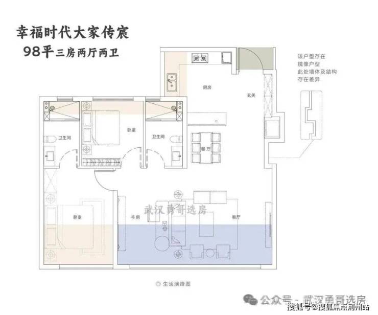 除了98平不是独立电梯厅(1梯2户),其他户型都很“豪横”,都是一梯一户。