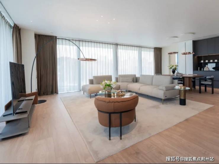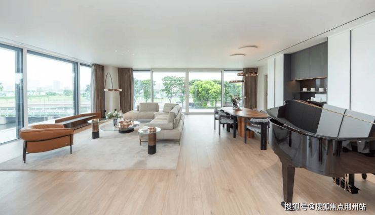 据说,这也是在国外找了不同设计师分别设计的,就是为了最大化发挥出各个户型特色。我们在现场看了下,虽然都是极简风格,但4个户型的装修设计,都和我们常规看到的极简风格配色不太相同。