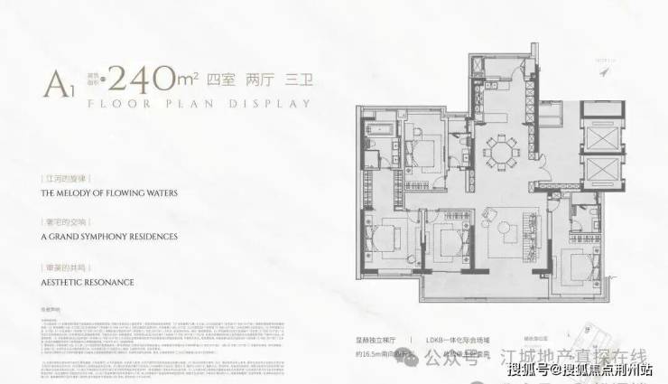 A1户型建面约240平,四房两厅三卫: