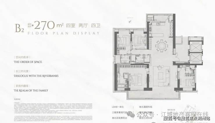 B2户型建面约270平,四房两厅四卫: