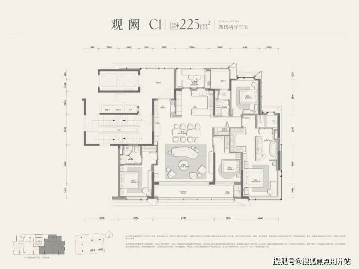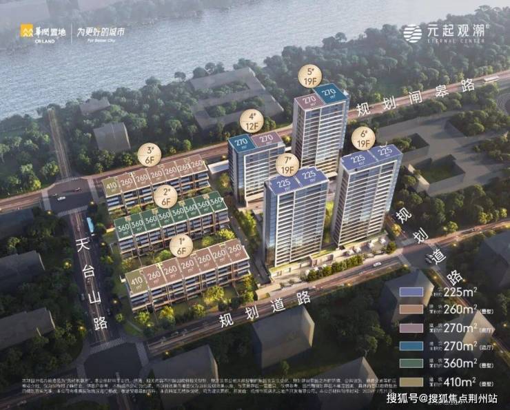 元起观潮府由4幢12-19F高层和3幢6F叠墅组成,叠墅分两叠、三叠两种类型,容积率2.3,高层户型面积约225-270㎡,叠墅户型面积约260-410㎡。