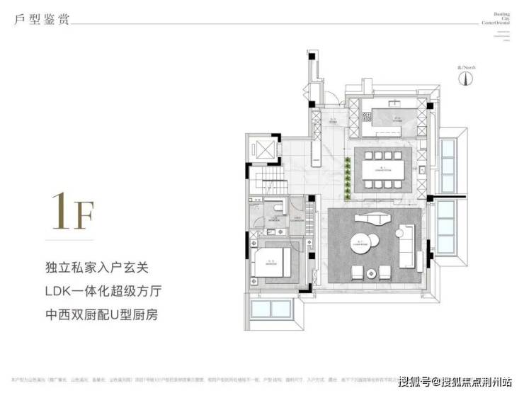 南向约13.4m大面宽、约6.7m面宽大横厅,LDKB设计、U型厨房,客餐双厅直通南向阔阳台。