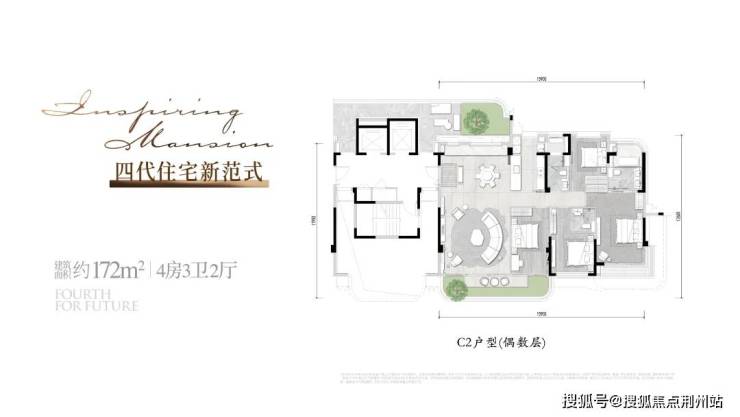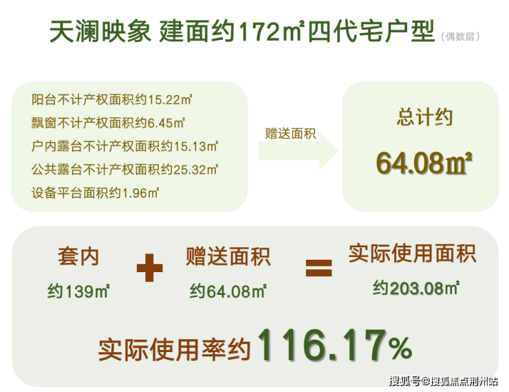 同样主打第四代住宅理念的天澜映象,其建面约172㎡的户型更是实现了约116%的实用率。