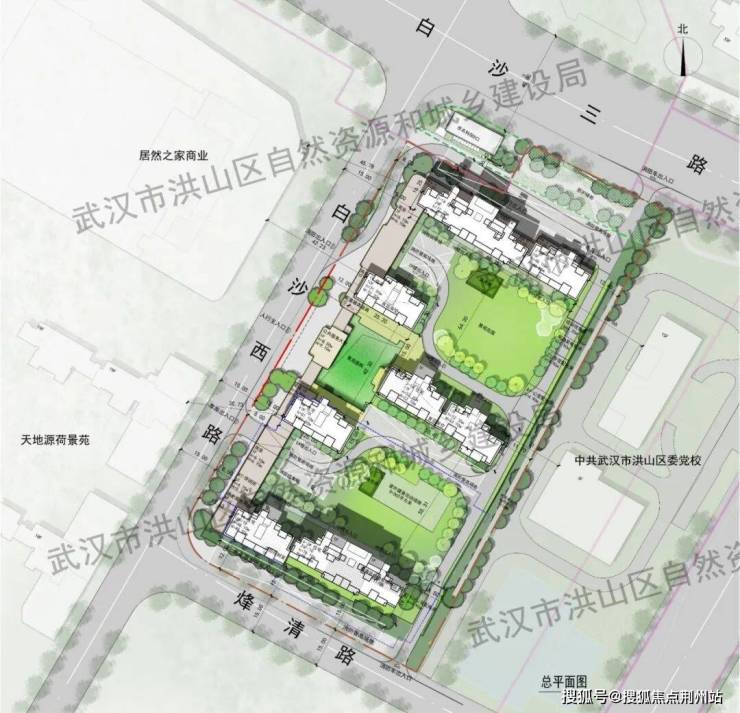 2026年2月12日,武汉城建白沙置业有限公司申报的洪山区委党校西侧地块项目武汉城建|白沙嘉序位于洪山区白沙三路与白沙西路交汇处。其规划方案、总平面图、日照及效果图等内容如下: