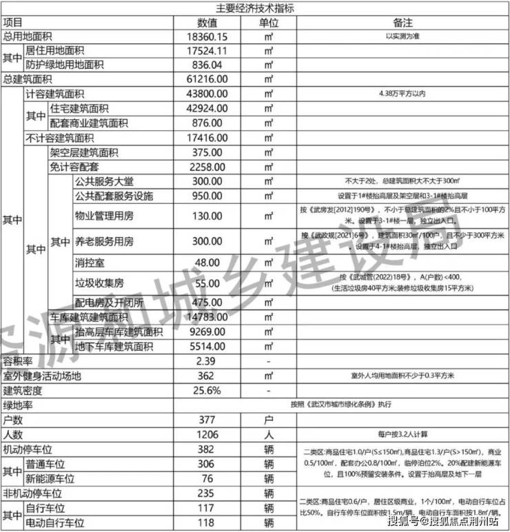 (武汉城建白沙置业洪山区委党校西侧地块项目武汉城建|白沙嘉序主要经济技术指标)