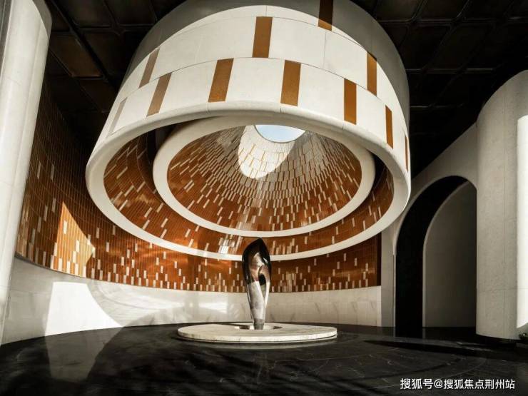 多层环形纹理和大屋顶的格栅化顶部设计,通过形态与材质的细节雕琢,打破了立面的单调感,赋予建筑造型丰富的层次与艺术感。