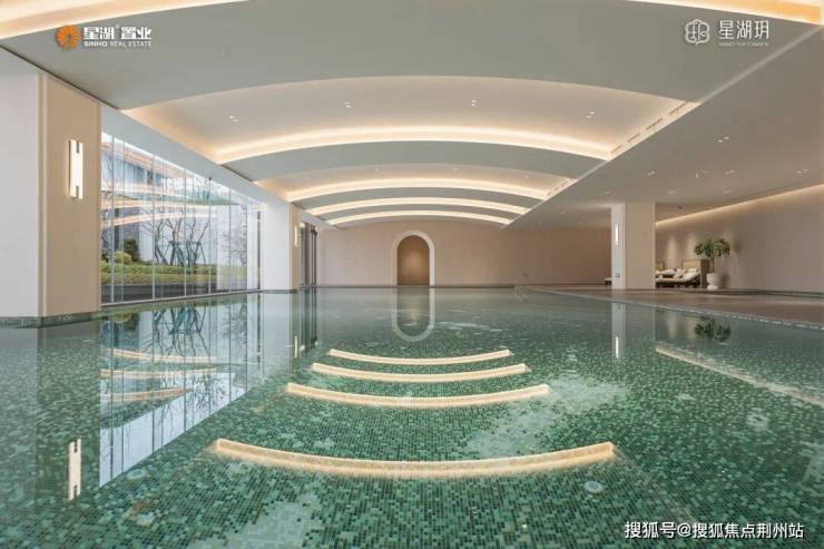 25米×9.6米四泳道标准,大面积落地玻璃消融室内外界限,孩子在儿童戏水池里扑腾,你躺在休憩躺椅上翻开一本书,各得其乐。