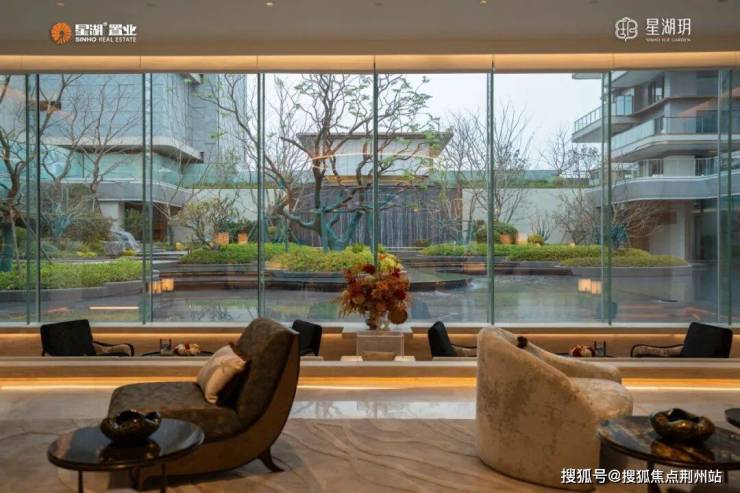 整面落地玻璃把室外庭院水景“框”进来,坐在这里会客或小憩,绿意和水景仿佛就在你身旁流淌。