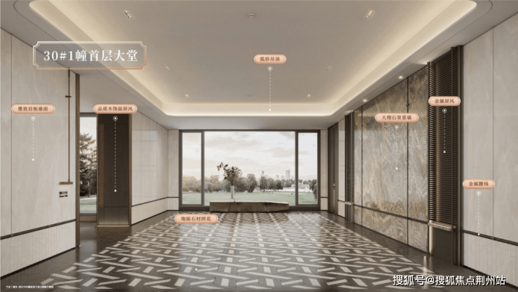 • 高定归家车坡道:车库入口地面为加厚石材,墙面使用大规格岩板及金属墙裙,顶面定制中式天花,随着车辆缓缓使用,线型灯光依次打开,每一刻都迎接业主归家。
