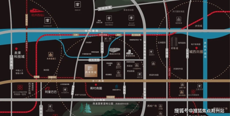 择址蒋村板块,地理位置优越。东接繁华的文教区,西临“宇宙中心”未来科技城,距离西溪湿地直线距离仅800米,闹中取静,拥享静谧诗意生活。