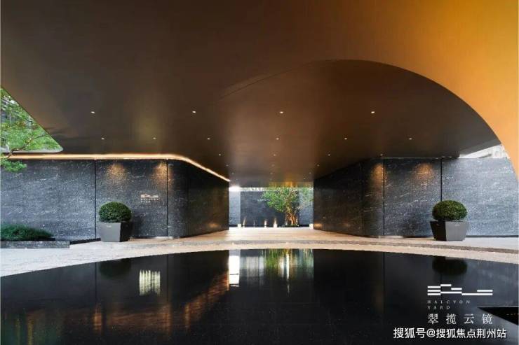再往前走,就是翠揽云镜打造的台州首个约80米酒店式环岛门庭落客区。核心区域采用了高端酒店比较经典的纵向门廊设计,向外连接着环岛,向内串联着后场水瀑中庭和精装归家大堂,从而为业主提供了非常大气的廊下灰空间。