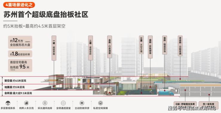 抬板社区的好处就不用再多赘述了,阳光地库、3D立体景观、超大杯公区...抬升尺度越大,享受感越强。