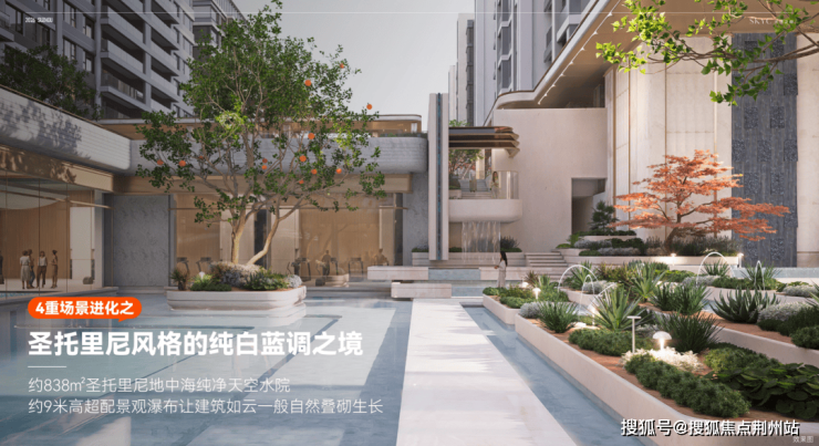把地中海风情和新加坡园林风格的结合,因为抬板所以看起来高低错落,大面积(约800㎡)的澄澈水景,台阶、连廊错落分布...没有那种“很刻意、很老登味”的堆料豪宅感,但是很舒服很治愈。