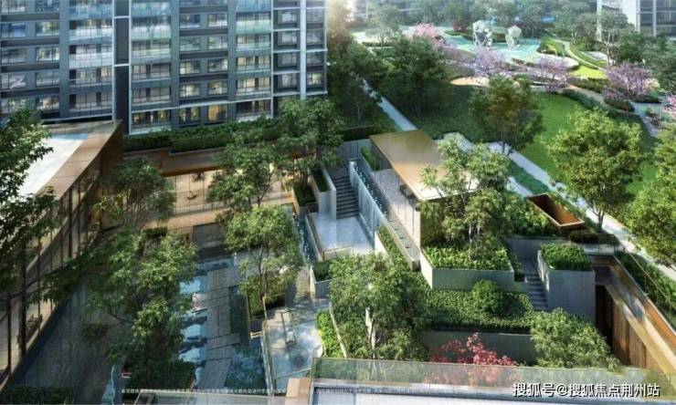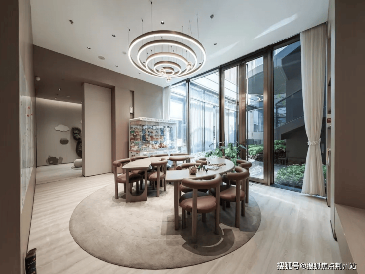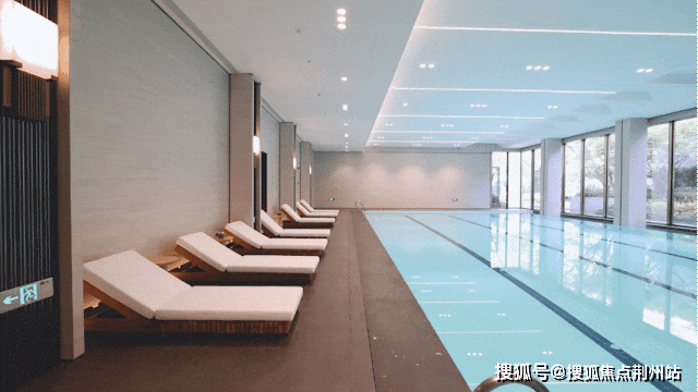 在下沉式景观庭院两侧,是不同的邻里空间。一侧是邻里中心,涵盖恒温泳池以及宽阔的健身房空间。当业主锻炼时,不被空间局限。透过落地窗,可以一边挥洒汗水,一边尽情欣赏庭院中的美景。