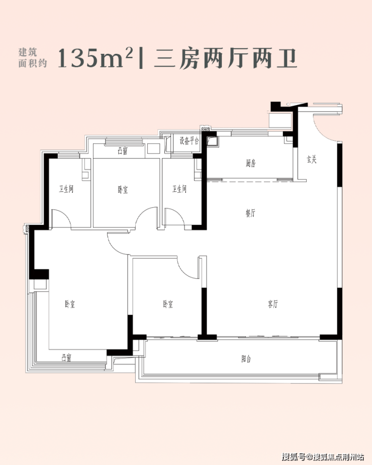 建面约135㎡三房两厅两卫: