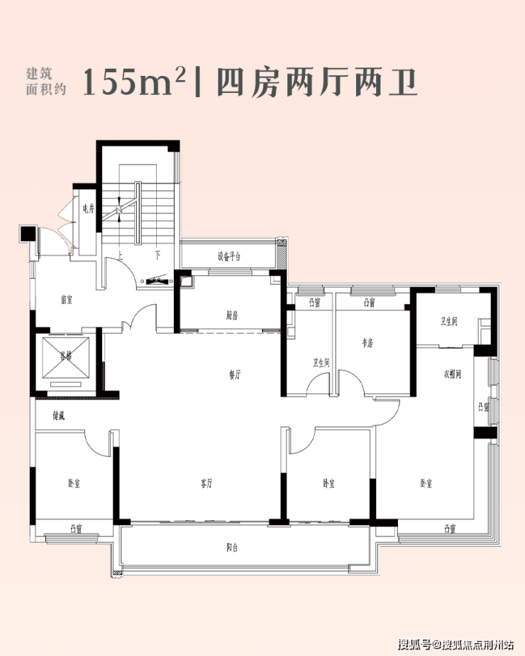 建面约155㎡四房两厅两卫: