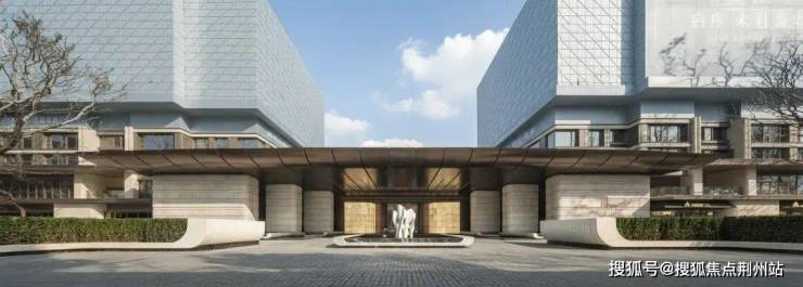 保利·天奕以“玉琮之门”讲述归家礼遇,在城市与社区的接驳地带,以一道“会呼吸的烟火幕墙”重新定义了上盖型物业的界面。主入口以杭州博物馆镇馆之宝“玉琮”为设计原型,将其转译为序列化的柱式与石台。