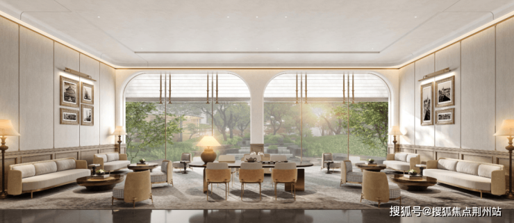 ●以“汉口风华鎏金繁花”为景观主题,提取民国时期建筑的“方中见圆”的线条元素,对话老汉口建筑美学,打造城心「一庭两轴十花园」主题园林,新四代浓荫住区。
