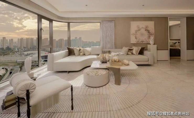 招商原颂建筑面积约155平方米的户型样板间,窗外可见武汉东站