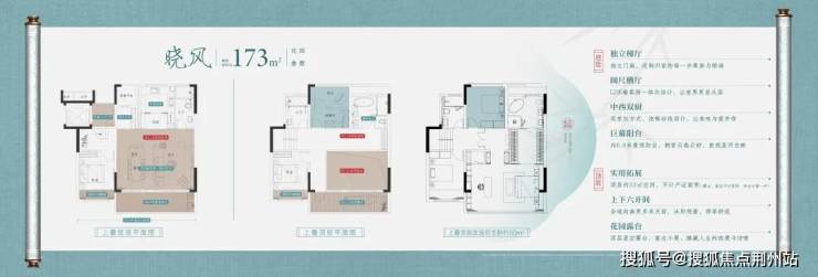 建面约173㎡的叠加户型,是4层真叠墅里面的上叠部分,一梯两户双开门,电梯口部分都可以归自家使用。整体来看,项目做到了LDK一体化设计,10米的南向面宽、中西双厨、3.2米层高等配置。