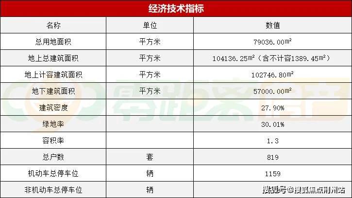 按照批前公示中的经济技术指标来看--项目总用地面积79036㎡,地上总建筑面积104136.25㎡(含不计容1389.45㎡),容积率1.3,机动车总停车位1159辆,车位配比约1:1.4。