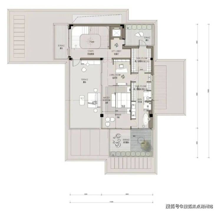 湖亭望月突破了传统别墅的一大短板——面宽。最大开间超过20米,几乎和大平层拥有同等的阔奢感。光一个主人套房,就有着超200㎡的超大面积。纵向尺度上,客厅挑高约7.5米,相当于2层楼高,堪比星级酒店大堂。这在苏州别墅上,是第一次出现。