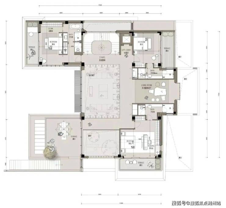 以建筑面积约700㎡的别墅户型为例,大宅整体面宽接近21米左右,与比弗利山庄豪宅同频的整层式空间设计,为每一个生活的场景创造了开阔的大尺度格局