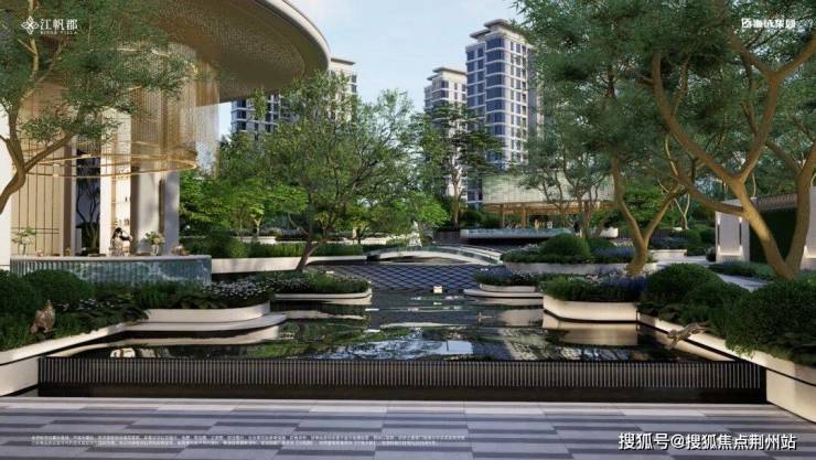 海成江帆郡中庭规划了超10000㎡的中庭核心景观,依托中庭景观而进行围合错落式布局。