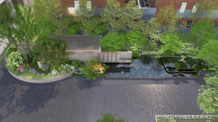 同时大门配有水钵,黑松,这样的搭配不仅视觉上效果更好,也能中和掉材料本身的冷感。